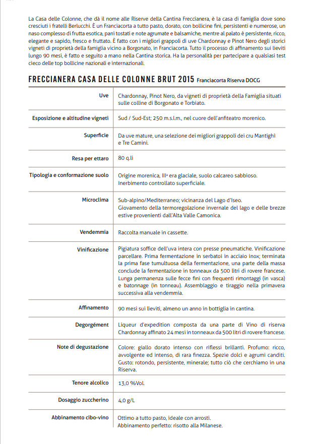 Freccianera FRANCIACORTA Casa delle Colonne brut Riserva non dosato 2015