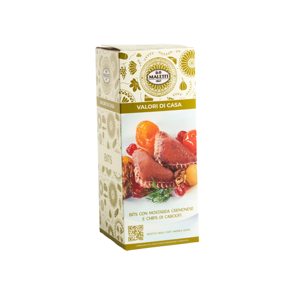 Cappello del prete insaccato monoporzione, una creazione mignon tipica di Maletti dell'antico cappello del prete modenese. Una rivisitazione unica ed elegante. L'impasto è il medesimo dello zampone, insaccato però in deliziosi triangoli di cotenna suina, cuciti a mo' di orlo. Sacchetti monoporzione.