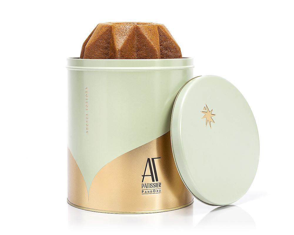 Disponibile nel formato da 850 g, il PandOro è proposto in un’elegante latta metallica dove Marco D’Andolfi fonde il salvia con l’oro.Immagine a scopo illustrativo. Il packaging potrebbe subire variazioni.
