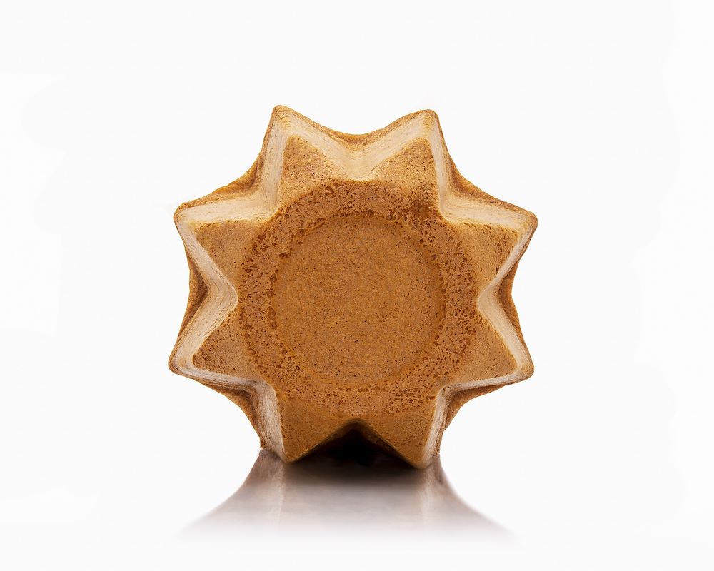 Una storia che narra di farina, burro, zucchero e uova. Ingredienti semplici, ma propri di una forma d’arte rara e sofisticata, in cui riscoprire quel gusto autentico che si concede solo dopo una lievitazione lunga e articolata. Le gentili note aggiunte di miele d’Acacia e vaniglia Bourbon evocano tenere immagini d’infanzia, quando la sommità stellata veniva generosamente coperta di zucchero a velo e subito l’aria profumava di festa.Un PandOro buono come il pane, prezioso come l’oro.
